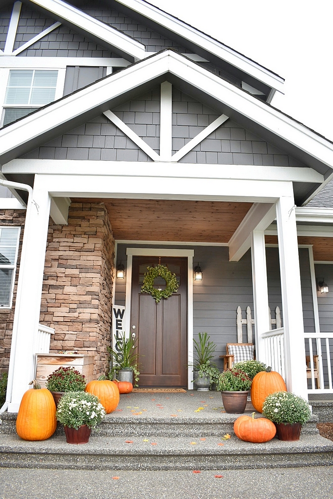 Front Porch Fall Pumpkins Decor Simple and elegant way to decorate porch and front door for Fall Autumn Front Porch Fall Pumpkin #FrontPorch #Fall #Pumpkins #Frontdoor
