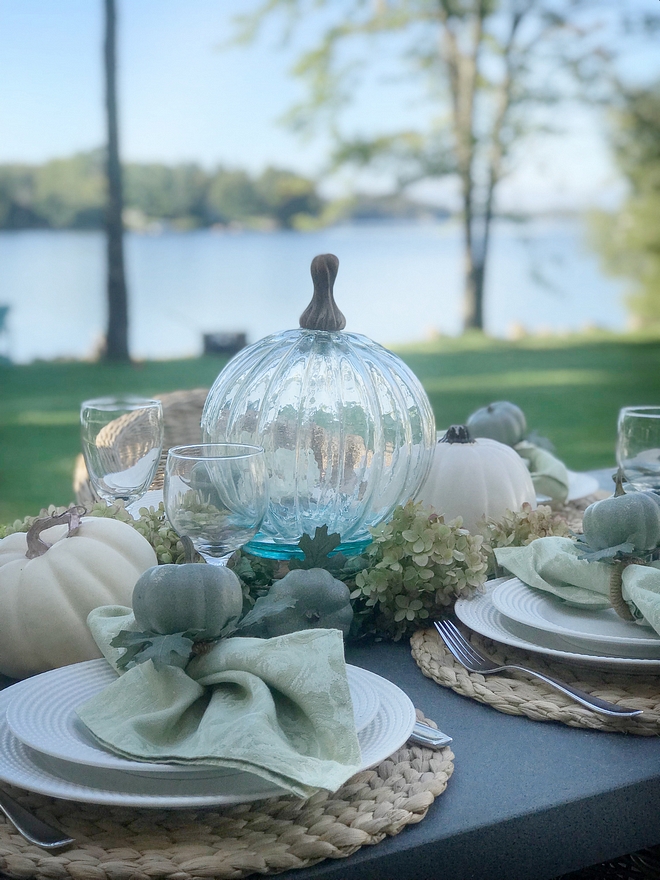 Fall tablescape In keeping with the neutral theme in my home, I wanted my fall décor to reflect the same peaceful calming atmosphere. Thus I chose to incorporate white pumpkins, muted green eucalyptus and lots of white and off-white into my tablescape #falltablescape #neutraltablescape