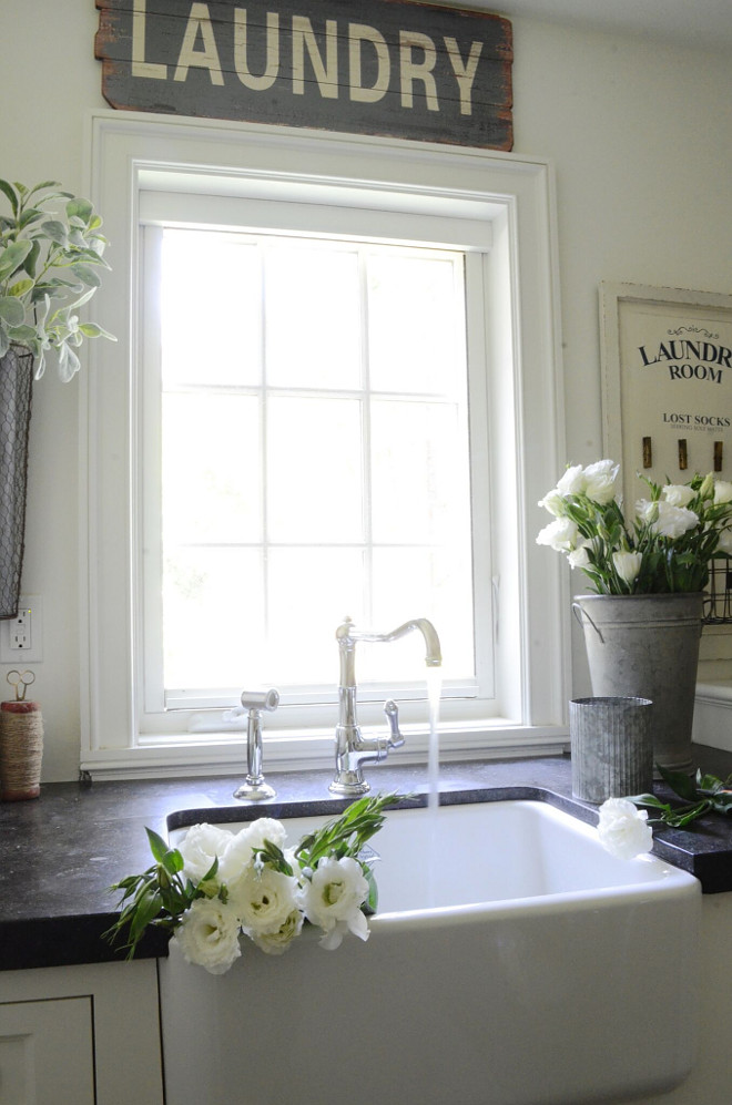 The laundry room doubles as my flower arranging space and is one of my creative hideaways in our home. It also makes doing laundry much more fun, when I have something pretty to focus on in between!