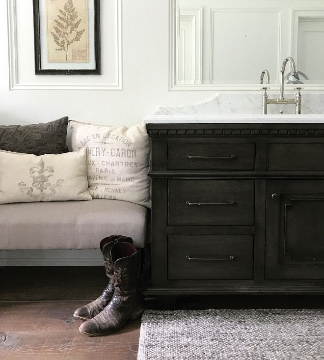 We chose not to add any built-ins other than the custom vanities, so I had to go furniture shopping for our bathroom right after we moved in!