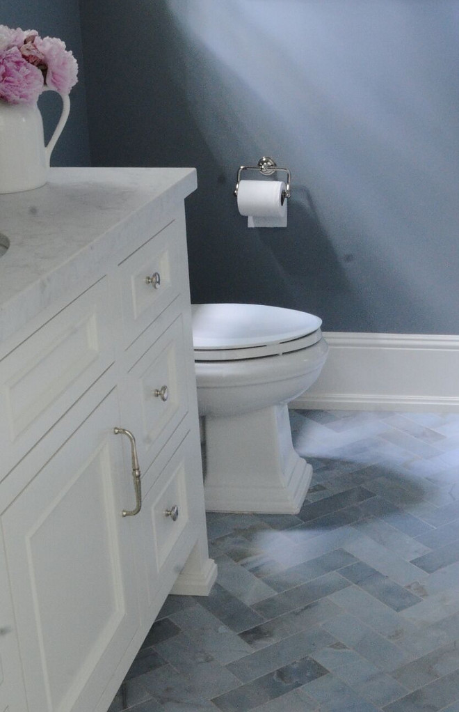 Herringbone Flooring : Walker Zanger – Jet Set in Cadet Blue.