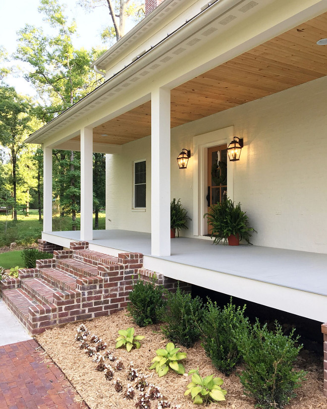 To bring in that Southern coastal feel, we had lanterns with the look of gas burning, and we used expose brick piers under the porches and tied them together with cream painted wood slats (still have to install on the front porch). The plans for this home also include shaker style shutters on the front (which match the shaker style cabinet doors inside)…Maybe one day we will get those shutters made and installed. I’m sure you all know, how owning and creating a home is a never ending process. As of now, we’ve lived in this home 8 months and we’re still making adjustments and improvements to the exterior and I’m still furnishing and decorating the inside. But that’s okay! I actually love adding pieces slowly as I like to fill my home with items that have some meaning or were gathered during family vacations. With that all being said, I hope you enjoy the tour of our home and possibly find some inspiration when designing or updating your own home!