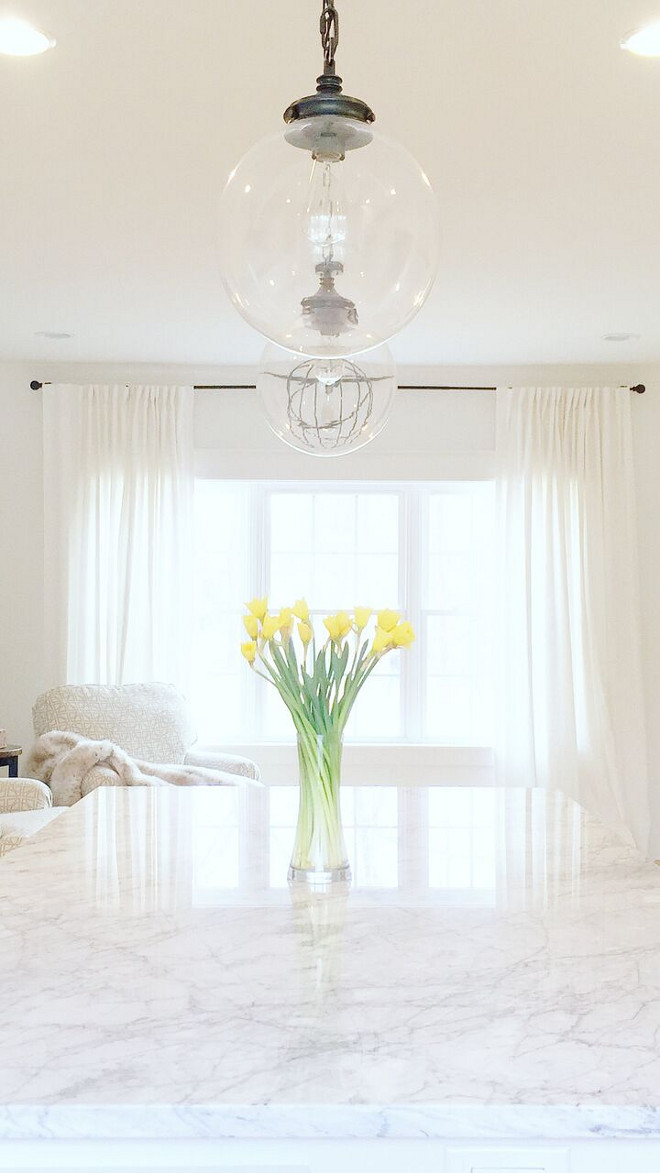 Countertops are Polished Carrara Marble – slab has a statuary marble look.
