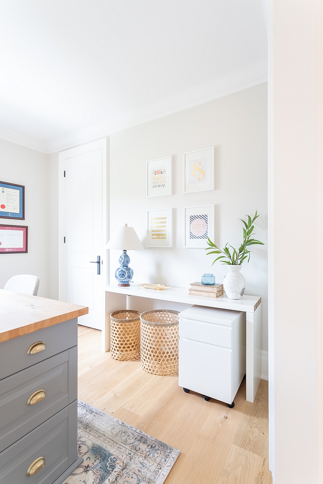 Another favourite space is our home office. This space is also our craft room, wrapping station and future homework station. I love that my husband and I can use it at the same time. It’s a bright, airy and cheerful space that I look forward to spending time in.