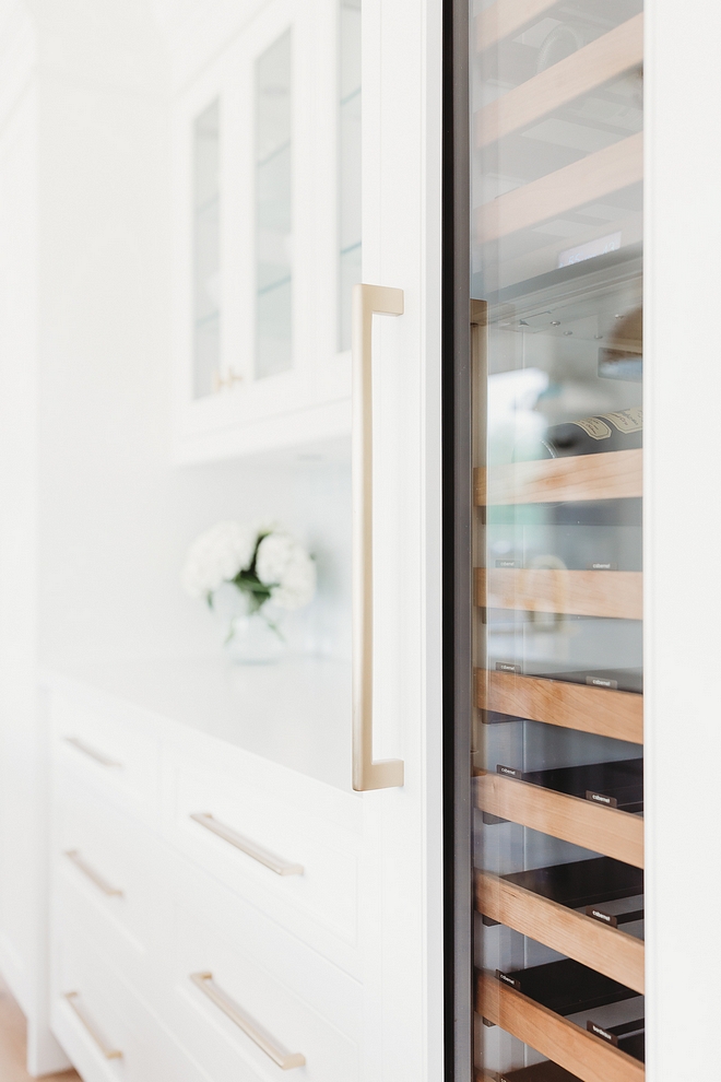 I panelled the refrigerator so that it blended in with the cabinetry, and we included a sub zero wine fridge next to a beverage centre area.