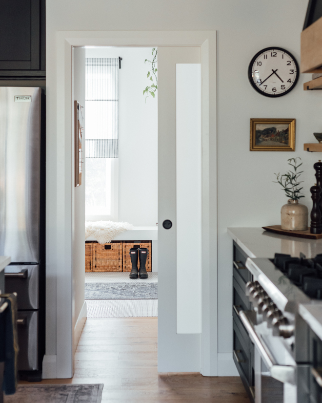 “Living in Canada with four seasons, having a drop zone and Mudroom was also another essential ‘must have’ for our layout. Having a window in the Mudroom is also a great trick to make a small space feel larger. The window is flanked with two built-in closets with a bench and baskets -which offers tons of storage space for our family.”- Elyse of Elyse McCurdy Home Designs.