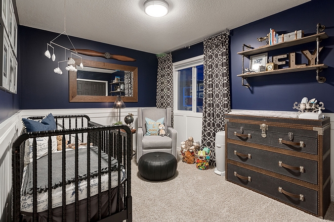 Cashton’s bedroom had a large hand-painted mural in it that didn’t fit our design plan for the room. Due to the thickness of the paint and the ridges it created, we had to have the wall skim coated and repaired to achieve a flat paintable surface. The whole room was repainted in a steely blue.