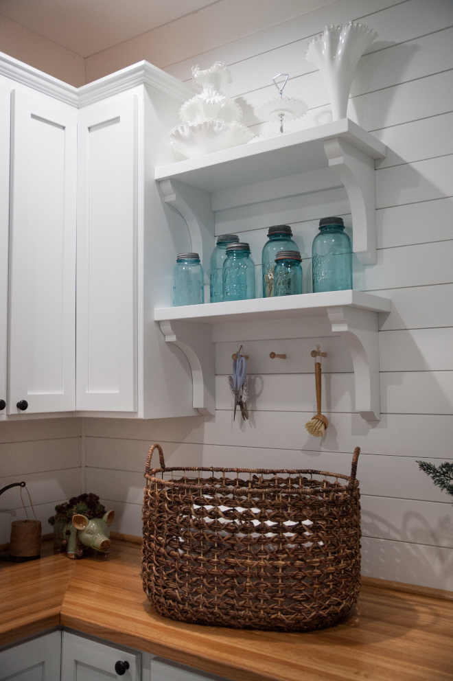 Our laundry room serves as a multi-use space. I love to craft and arrange flowers on the large butcherblock countertop, and the sink is great for paint projects.