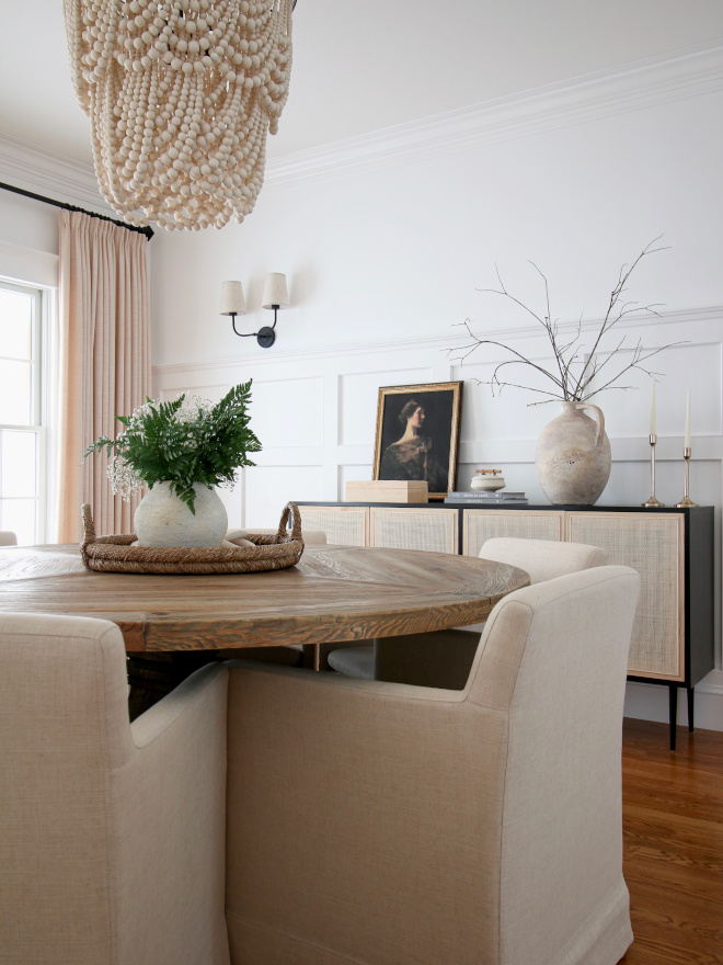 “The same wall molding carries into the dining room – also a DIY by yours truly – but this time at a 2/3 height from the floor. Our ceilings are 9ft tall on the main level and when deciding molding height, I recommend installing at 1/3 or 2/3 of the total wall height following the golden rule of thirds in design and architecture.” – Stefana from @stefanasilber