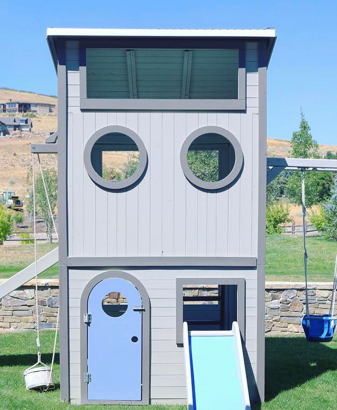 The playground is by Cedarworks Playsets. We painted it and added tin roof to match house.