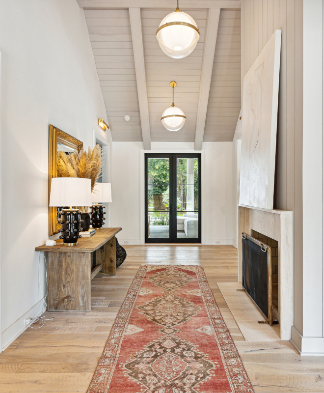 A fireplace in the foyer hallway feels so charming and Southern. What a welcoming way to arrive home!