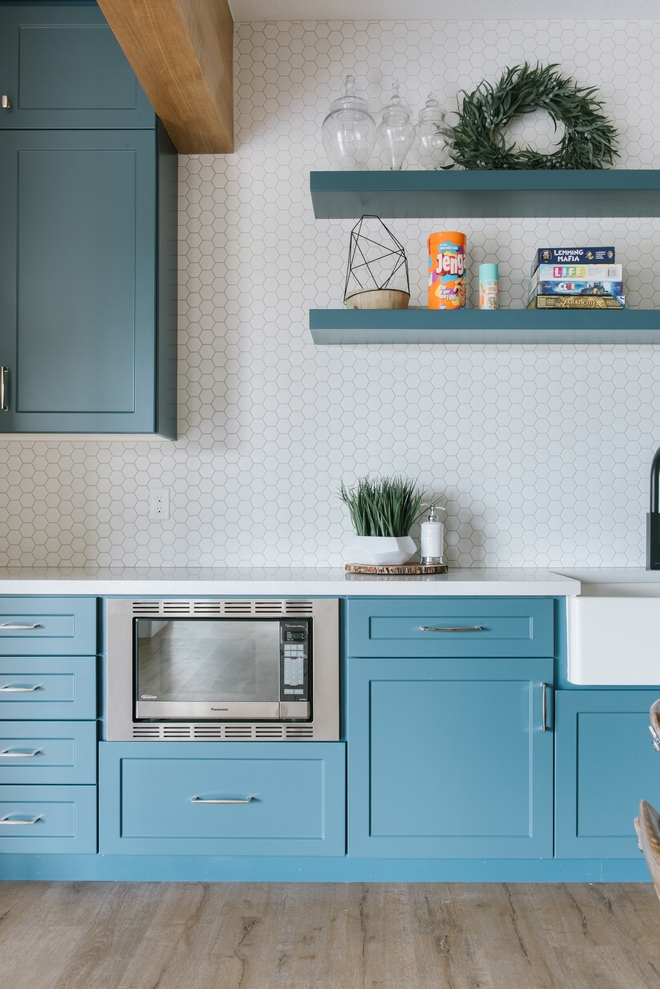 Cabinet Color: “Benjamin Moore Newburyport Blue HC-155”.