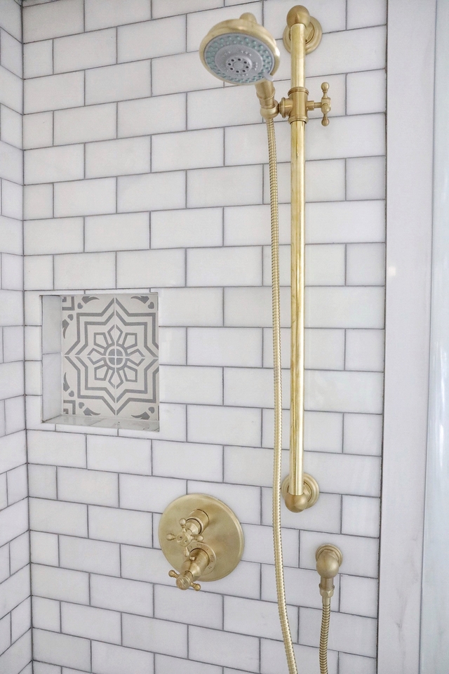 Debi also used a classic Bianco Dolomite subway tile on the shower walls and added a dark grey grout to give it a gentle contrast.