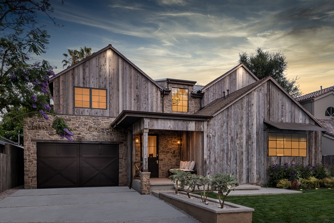 “The hallmark of the house and its story begins on the outside. Century-old reclaimed wood sourced from a Montana barn covers the entire house front and back for the exception of old world stone accents.” – Alycia Lane Joseph of House Averie Lane.