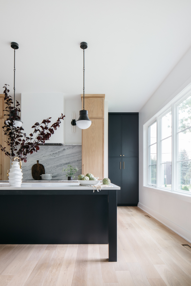 Cabinet Paint Color: Sherwin Williams White Sail, Slab style.