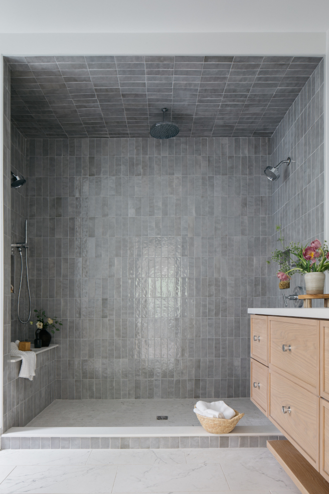 Grey Shower Wall Tile: Bedrosians Cloe, Grey.