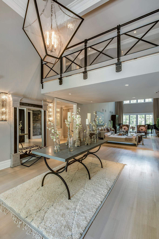 All rugs were also custom made for the house, as well as the kitchen table, foyer table with custom made iron base and a bluestone top. I designed and had made a concrete fireplace mantel and a concrete pool bathroom vanity top. The barn door in the breakfast room was also made for the house. Along with a had crafted reclaimed white oak dining table, and a hand made zinc kitchen table.”