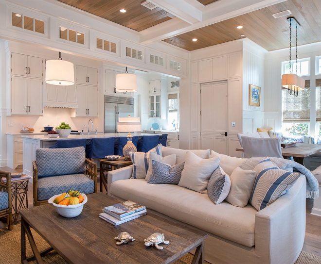 The homeowners of this Florida vacation home are from Mississippi and have been vacationing in Watersound for years. They have had condos but decided to build a home where their entire family could be together, including their five grandchildren! They wanted something that was different than their primary residence but didn’t want a home that screamed the beach. They went for a simple cottage style home. To keep the transition flowing from room-to-room, the interior designer, Courtney Dickey from T.S. Adams Studio, painted the entire living area in Benjamin Moore OC-17 White Dove – the perfect soothing off-white for a seaside home.