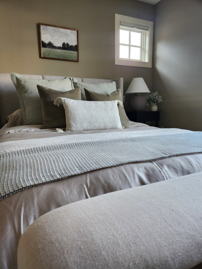 This bedroom’s color palette was chosen to feel soft and grounding — the kind of space that immediately helps you exhale the moment you walk in. I love how the soft greens bring in just the right touch of color, especially during the colder months, when the world outside feels muted and gray, and we crave a little warmth.