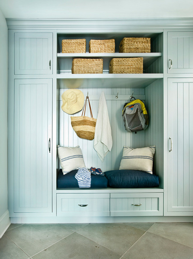 . The mudroom tile is a honed Travertine, small Versailles pattern.