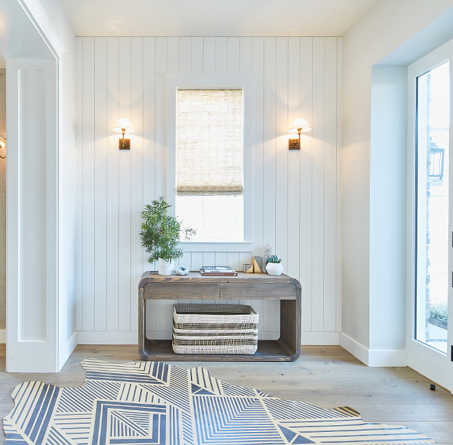 The foyer also features a vertical shiplap accent wall. Love it!!! Shiplap paint color is Dunn-Edwards DEW380 ‘White’ in semi-gloss finish.