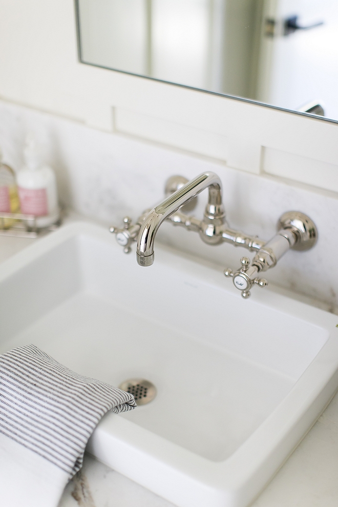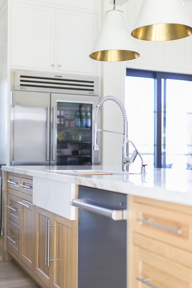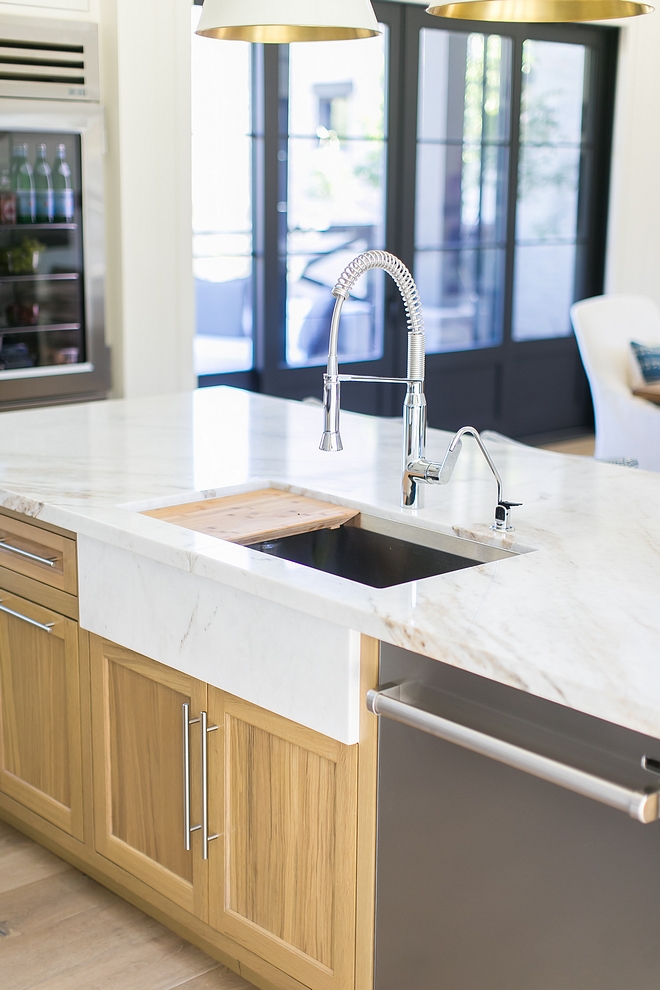 The marble apron at sink came about from my conflict of I really wanting the island’s long expanse of cabinets broken up by a farm sink, but also really wanting the functionality of Kohler’s 8 degree sink.