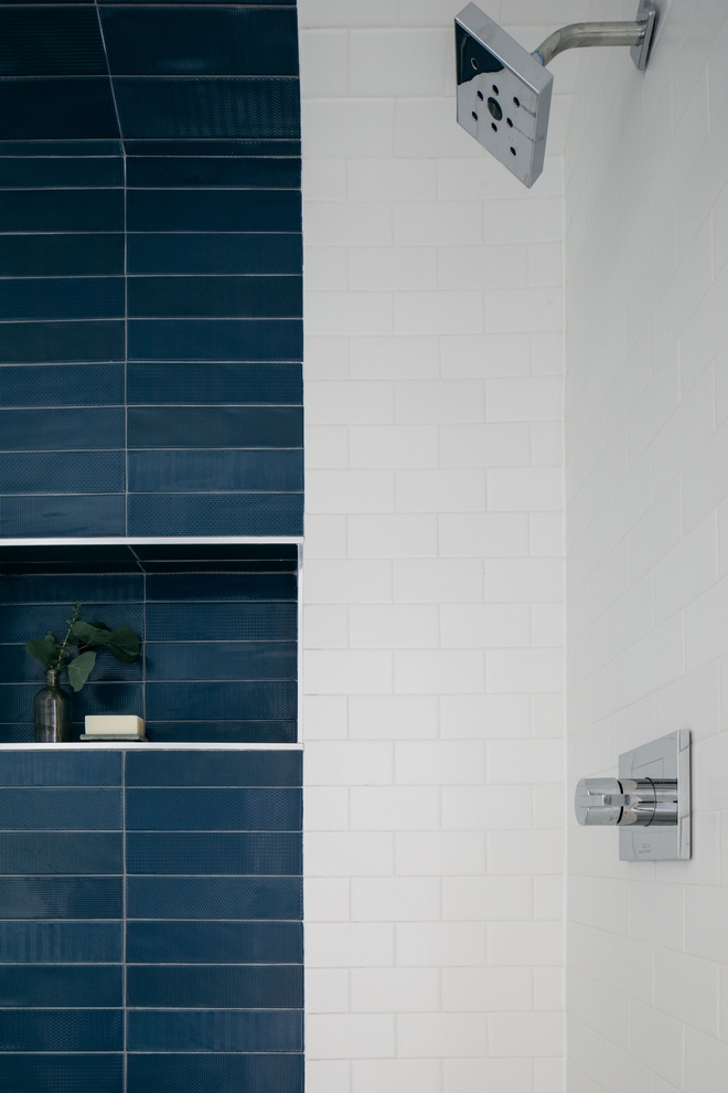 Shower Tile: Create a “wainscoting” look by using two different colors of subway tiles. This is such a fun and yet affordable way to add some interest to a shower! Pin this idea! π
