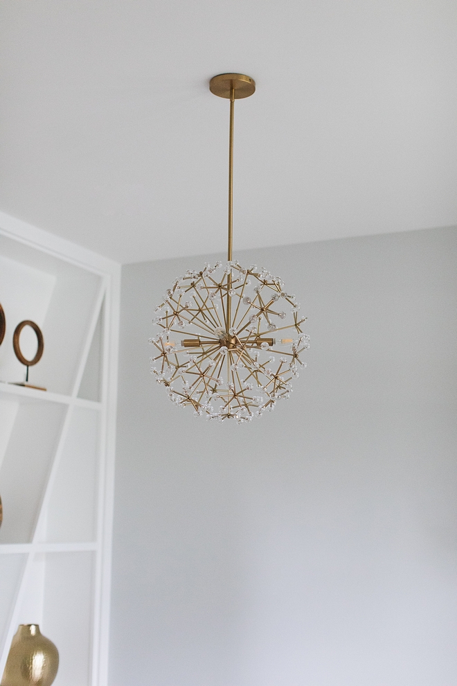 Lighting: CB2 Brass Pendant.
