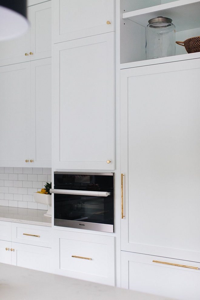 Kitchen Cabinet Details: Maple Shaker-style kitchen cabinet painted in Sherwin Williams Extra White, which is one the crispest whites you can get.