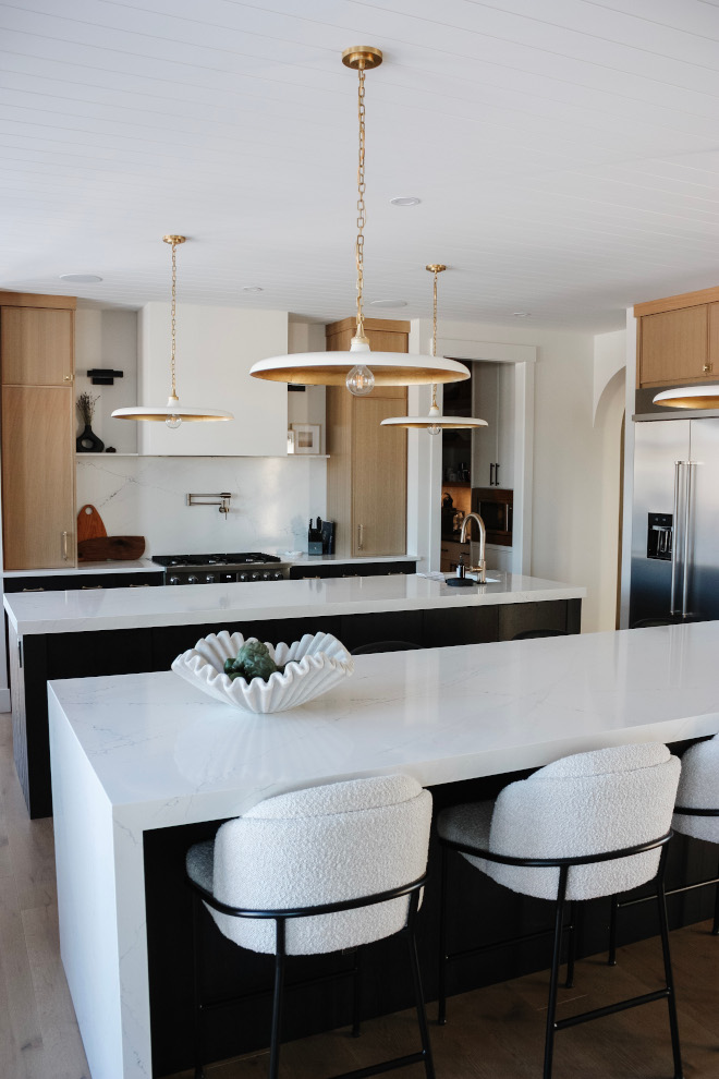 “Some of the standout features such as the plaster range hood, quartz counters and backsplash. With a blend of white oak and dark cabinetry and both black and brass hardware, the kitchen exudes a timeless feel away from trends and utmost practicality, making it a focal point of both style and functionality.” – Citizen Design Co.