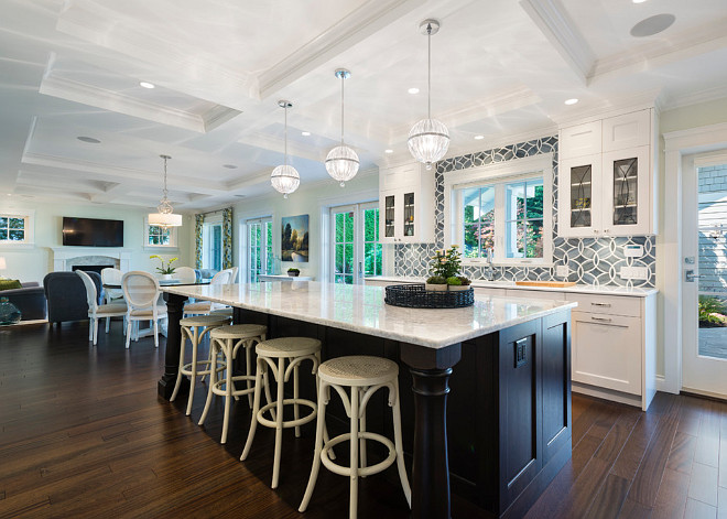 Designed by the Canadian interior designer Sarah Gallop Design Inc. and built by Kemp Construction, this kitchen features the most classical choices when it comes to interior design: a blue and white color palette.